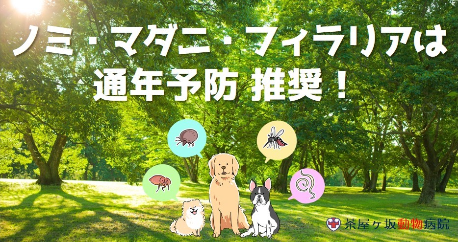 茶屋ヶ坂動物病院では、散歩が大好きなアクティブなワンちゃんには特に通年予防を推奨しています!