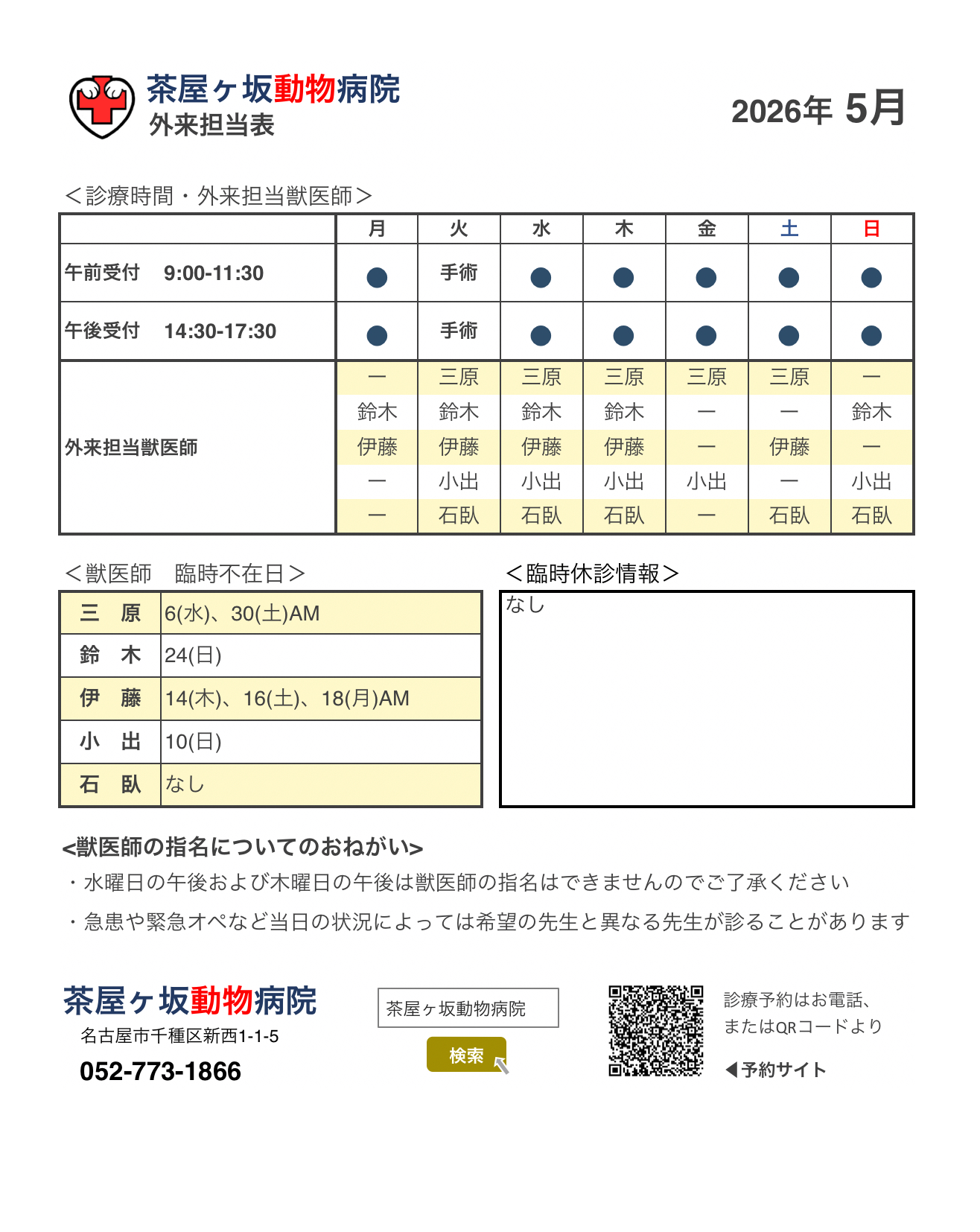 5月 獣医師 外来担当表